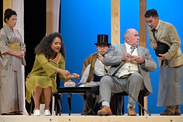 Zoran Todorovich, der aus Belgrad stammt, startete selbst am Landestheater Detmold seine international erfolgreiche Karriere, die ihn u.a. nach San Francisco, London, Madrid und Tokio führte. Die tiefe Verbundenheit zu diesem Haus äußert sich nun auch darin, dass er dort sein Regiedebut gibt. Als ausgewiesener Spezialist fürs italienische Fach verwundert es kaum, dass seine Wahl dafür auf Puccini gefallen ist. In seiner Inszenierung stellt er die Titelfigur ganz ins Zentrum des Geschehens, das zeigt sich schon in den Kostümen, die er selbst entworfen hat. Butterfly ist die einzige traditionell japanisch gekleidete Figur, trägt einen üppigst verzierten Kimono, während bei ihrer Verwandtschaft auch in der Kleidung schon starke Einflüsse der westlichen Welt erkennbar sind. Überhaupt scheint Cio-Cio San als einzige an den Traum vom Glück mit dem amerikanischen Offizier zu glauben, schon das drehbare Ständerwerk, das Jule Dohrn-van Rossum auf die Bühne des Landestheaters gestellt hat und das mittels halbdurchsichtiger Vorhänge zum Haus wird, scheint nicht auf Dauer angelegt, wirkt provisorisch. Als Butterfly die Wahrheit erkennt, bleibt ihr – trotz des Strebens nach allem Amerikanischen ganz der Tradition verbunden – nur der Ausweg in den Selbstmord.