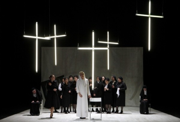 Der Regisseur Dirk Schmeding teilte die Oper in einzelne Bilder, die jeweils mit dem Vorhang und einer kleinen Pause der Stille enden. Die Geschichte wird dadurch klar strukturiert, großformatige Überschriften, die sich nur auf wesentliche Textpassagen des Librettos einschränken, erklären das Geschehen verständlich. Das kleine schmucke Detmolder Theater hat eine große, großartige Operninszenierung gezeigt.
