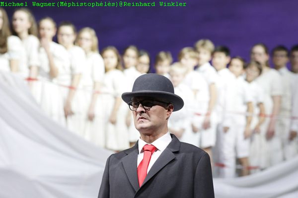 Diese verfügt über eine lyrisch schwelgerische sinnliche Stimme, was sie besonders gut im Chancon gothique „Le roi de Thulé“ unter Beweis stellen konnte. Seit der Spielzeit 2017/18 ist sie festes Ensemblemitglied am Landestheater Linz. Michael Wagner glänzte mit seiner eindringlichen Bassstimme als wahrhaft dämonischer Méphistophélès. Während des Höllenritts sitzt er hinter dem Lenkrad des Pick-ups, während Faust dahinter auf der Ladefläche steht und der Zuschauer auf einer Leinwand die Wüstenlandschaften des Mittleren Westens der USA vorbeiziehen sieht. Dann dreht er das Autoradio auf und stimmt diabolisch lächelnd in den himmlischen Chor ein und liefert Faust in der Hölle ab, die sich unseren Augen als Leichenhalle eröffnet. Sein Leichnam wird mit einem Nummernschild am großen Zeh aufgebahrt und schließlich in einen lebenden Leichnam, ein seelenloses Wesen, transformiert. Er erhält einen schwarzen Mantel mit Melone als Referenz an René Magritte und ist nun optisch bestens ausgerüstet, um das Böse auf elegante Weise in der Welt zu verbreiten… Méphistophélès aber verlässt die Szene, denn hier gilt es ja nicht mehr, Faust zu verführen…