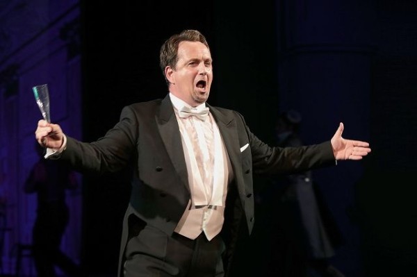 Und nun zu einer Sparte, die man in dieser Aufführung nicht hoch genug loben kann, den Sängern. Selten habe ich ein so homogenes Ensemble erlebt wie bei dieser „Fledermaus“. Es gibt eine Reihe von Glanzleistungen und es gibt – und das ist nicht immer so – keinen einzigen Ausfall. Doch der Reihe nach. Eine Paradeleistung bringt der slowenische Tenor Matjaz Stopinsek als Gabriel von Eisenstein. Mit strahlender und bombenfester Höhe versehen, nötigt er der Partie Facetten ab, die man so noch gar nicht kannte. Dazu kommt eine Spiellaune, die einfach nur Freude macht, man merkt richtig, wieviel Spaß er an dieser Partie hat, er kostet sie auch weidlich aus und stürmischer Applaus des beeindruckten Publikums sind sein wohlverdienter Lohn. Ihm zur Seite die Operettendiva von Bad Ischl, Regina Riel. In ihrem dritten Jahr in Bad Ischl wird sie immer sicherer, ihr voller weicher und warmer Sopran erblüht immer mehr, vom zarten Piano bis zum feurigen alles übertönendem hat sie die gesamte Palette der Diva drauf. Einer der vielen Höhepunkte ist ihr leidenschaftlich gesungener Csárdás auf dem Fest des Prinz Orlowsky, stimmkräftig, aber dennoch zurückhaltend, jubilierend und zugleich berauschend. Auch vom darstellerischen gibt es keinerlei Einschränkungen, auch harmoniert sie auf das vortrefflichste mit Matjaz Stopsinek, was besonders beim „Uhrenduett“ zum Tragen kommt. Als Gefängnisdirektor Frank brilliert Josef Forstner und immer noch kann er stimmlich voll überzeugen und von darstellerischen hat er mehr Feuer im kleinen Finger wie mancher in der ganzen Hand.