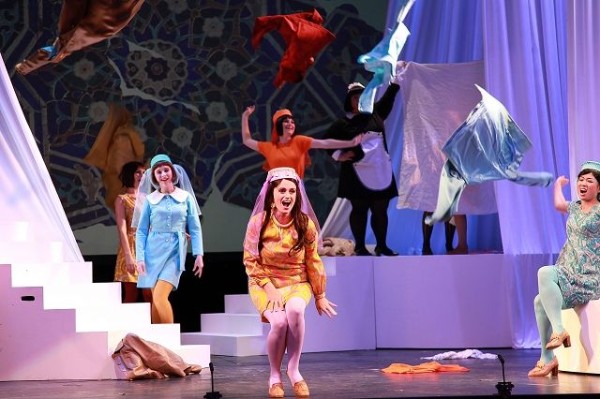 Die Regie und Choreographie liegt in den bewährten Händen von Leonard Prinsloo und er macht seine Sache, bis auf eine einzige Ausnahme, sehr gut. Eine kleine zeitliche Verschiebung, die aber nicht ins Gewicht fällt und eine – Gott sei Dank – konventionelle Behandlung des Stoffes, lassen das orientalische Märchen zu einem Vergnügen für das aufnahmebereite Publikum werden. Gott sei Dank umgeht der Regisseur auch die mögliche, aber vollkommen operettenuntaugliche Möglichkeit, aktuelle Bezüge in das Geschehen einfließen zu lassen. Auch das stimmige Bühnenbild von Su Pitzek, welches den Orient vor den Augen der Besucher entstehen lässt und die bunten, dem Auge schmeichelnden Kostüme von Barbara Häusl wissen zu gefallen. Leidenschaftlich, schwungvoll, alle Feinheiten der Partitur klangvoll herausarbeitend lässt Marius Burkert das Franz-Lehár-Orchester frisch und klangvoll aufspielen. Schwungvoll, sängerdienlich und gerade die unterschiedlichen musikalischen Ströme voll ausschöpfend kann er einen großen Abend mit seinen Musikern verbuchen. Dem schließt sich auch der gut eingestellte Chor des Lehár Festivals Bad Ischl an, sauber und präzise einstudiert von Gerald Krammer.