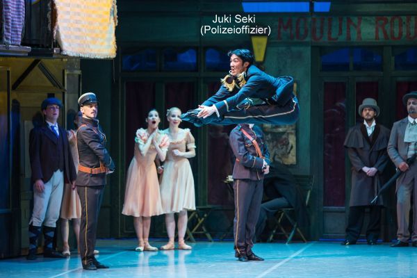 Aber auch das übrige Ensemble präsentiert sich auf hohem Niveau – ob dies nun der kraftvolle Japaner Juki Seki als Polizeioffizier, Gregor Guštin als drastischer Bruder Swanildas oder der konzentriert den alten Maler Coppelius gestaltende Goran Tatar ist. Auch die vielen kleinen Episodenfiguren, die ständig die Bühne bevölkern, sind individuell gezeichnet – jeder ist Teil eines sich ständig wandelnden und immer lebensvollen Gesamtbildes. Großartig sind auch die prallen und temperamentvollen Ensembleszenen, wenn um Beispiel die Can-Can-Mädchen über die Bühne wirbeln. Und auch der skurrile Humor findet in der Gerichtsszene seinen gebührenden Platz.
