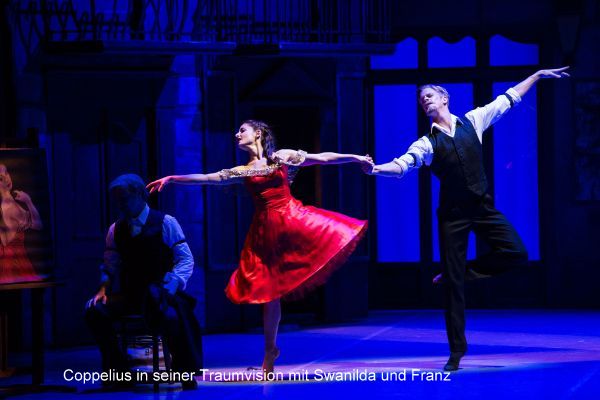 Aber daneben gibt es auch immer wieder berührende Ruhepunkte – etwa im letzten Bild, wenn der alte Coppelius in Träume versinkt und sich gleichsam in der Verkörperung des jungen Hans wiederzuerkennen vermeint. Da zeigt zum Violin-Solo das wiedervereinte Paar Swanilda/Hans „Pas de deux“-Kunst auf hohem Niveau. Dieses Violin-Solo spielt der Konzertmeister des Laibacher Opernorchesters mit saftig-kräftigem Strich – da hätte man sich vielleicht etwas mehr melancholisch-parfümierte Verhaltenheit gewünscht.