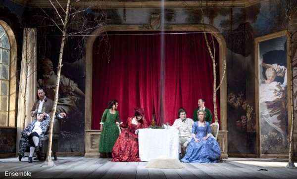 Die Lüneburger Sinfoniker musizierten unter der Leitung ihres Chefs Urs-Michel Theus präzise und solide, aber manchmal etwas zu laut. Flotte Tempi und Kürzungen bei den Rezitativen sowie die Streichung von „Nur ihrem Frieden“ führen im ersten Akt zu einer etwa 10-minütigen Verkürzung gegenüber der Normallänge. Im zweiten Akt wurde dann auch an drei Musiknummern die Axt angelegt, so dass die Gesamtdauer der Oper auf unter zweieinhalb Stunden gedrückt wurde. Die Kürzungen betreffen (dramaturgisch nachvollziehbar) die neunte Szene des zweiten Akts (viele neuere Inszenierungen fügen hier indes die dramaturgisch problematische Szene Leporello – Zerlina wieder an) sowie die scena ultima, von der nur der Moralgesang übrig bleibt. Im Finale des zweiten Akts erreicht das Orchester eine schöne dramatische Steigerung. Der kleine Haus-Chor des Theaters, verstärkt durch den Extrachor, alle in hübsche ländliche Kostüme gekleidet, war präzise einstudiert und zeigte dazu eine große Spielfreude. Bei den Sängern überragten Ulrich Kratz als Don Giovanni und Nico Wouterse als sein alter ego Leporello. Giovanni mit elegantem warmem Bariton, Leporello sehr stimmkräftig und etwas bissiger. Beide sangen perfekt textverständlich sowohl im Rezitativ als auch in den Arien. Sie enthüllten in der deutschen Übersetzung des Stücks von Georg Schünemann, bearbeitet von Peter Brenner, in ihrem verbalen Schlagabtausch das sozialkritische Potential des Stücks. Arthur Pivu sang mit kernigem Bass einen soliden Masetto und gab gleichzeitig den Komtur. Bei den Damen war das Bild etwas gemischt. Franka Kranais war eine sehr zierliche Donna Anna, leider textlich kaum zu verstehen; ihren stimmlichen Höhepunkt erreichte sie im „Ich grausam?“ Yaroslava Romanova, ebenfalls von reizender Bühnenpräsenz, gab eine sauber intonierende Zerlina, und Sonja Gornik mit ausladendem dunkel timbrierten Sopran die Donna Elvira, die ihr Spiel zwischen Rache und Liebe glaubhaft gestaltete. MaKenzie Gallinger wurde als Ottavio in ein übertrieben lächerliches weißes Rokoko-Kostüm gekleidet; auch benutzt er schon einen Gehstock. Stimmlich vermag er nicht zu überzeugen.
