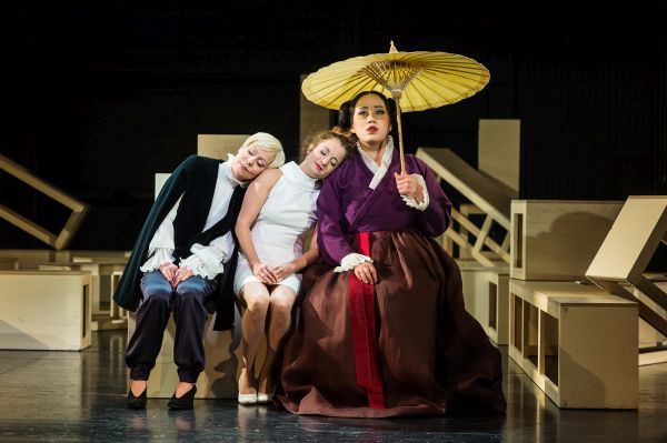 Auch in dieser Beziehung kann das Luzerner Theater auf ein sehr erfolgreiches Jahrzehnt zurückblicken und auf das Erreichte stolz sein. Diese Pflege des Ensembles schafft eben auch eine ganz besondere Beziehung zwischen Künstler und Publikum, man nimmt Anteil an der Entwicklung der Sängerinnen und Sänger, findet Identifikationsmöglichkeiten, ist gespannt darauf, sie in immer wieder neuen Rollen, mit neuen Herausforderungen zu erleben. Bei BÉATRICE ET BÉNÉDICT erfreut man sich an den schönen Stimmen der schon länger am Haus tätigen Sänger Flurin Caduff (Don Pedro), Todd Boyce (Claudio), Utku Kuzuluk (Bénédict), Szymon Chojnacki (Somarone), den wunderbar harmonierenden Stimmen der Sängerinnen Carla Maffioletti (Héro), Jutta Maria Böhnert (Béatrice) und des neuen Ensemblemitglieds Eunkyong Lim (Ursule). Den musikalischen Höhepunkt der 15 Musiknummern stellt zweifelsohne das Nocturne am Ende des ersten Aktes dar. In dieser „Nuit paisible“ verschmelzen die beiden kostbaren Timbres von Carla Maffioletti und Eungkyong Lim zu purem Wohlklang, traumhaft schön und zart gerät diese Rousseausche Evokation der Natur. Dass auch die resolute Béatrice zu Kantilenen von tiefer Empfindsamkeit fähig ist und unter der rauen Schale ein weicher Kern schlummert, demonstriert Jutta Maria Böhnert in ihrer grossen Arie Que viens-je d’entendre? im zweiten Akt. Die Stimme fliesst bruchlos mit perfekter Ausgeglichenheit, wunderschön phrasierend. Die abgerundete Tongebung und die reichhaltige Ausdruckspalette berühren und begeistern.
