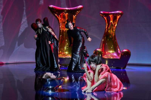 Was macht ein Intendant, wenn seine Hauptdarstellerin an einem viralen Infekt erkrankt und nicht singen kann, nicht singen darf? Er sucht einen Ersatz oder sagt ab! Benedikt von Peter geht einen anderen Weg: Er sucht einen Ersatz, welcher die Rolle studiert und gesungen hat. Er lässt seine Hauptdarstellerin auf der Bühne spielen und die Sängerin auf der Seitenbühne, sichtbar für das Publikum, singen.