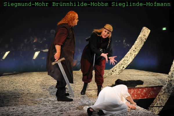 Eine ideale Sieglinde in Aussehen, Spiel und Gesang gelang Magdalena Anna Hofmann. Jubel über die Aussicht auf Befreiung aus der erzwungenen Ehe machte sie mit exakt getroffenen Spitzentönen über den Orchesterklang hinweg ebenso deutlich wie den Selbstzweifel im II. Aufzug. Die tiefe Lage fast ohne Orchester im III. Aufzug bei „Nicht sehre dich..“ gelang ergreifend so auch das Legato der Spitzentöne beim „hehrsten Wunder“ Für ihren Siegmund stand mit Thomas Mohr ein stimmgewaltiger Heldentenor mit ewig langen „Wälse“-Rufen auf der Bühne. Er beherrschte aber auch Legato-Bögen, etwa in der Todverkündung, oder zartes p, etwa bei „So schlummre nun fort“. Sein Stimmfarbe blieb allerdings stets gleich, ob er von Rache oder Liebe sang. Spitzentöne zu forcieren hätte er nicht nötig gehabt.