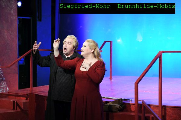 Als neben Wotan wichtigste Person des ganzen „Ring“ glänzte Dara Hobbs mit mächtigem hochdramatischen Sopran und ebenso hochdramatischem Spiel. Besonders lag ihr die Mittellage auch im p und bis zu tiefen Tönen, etwa zu Beginn des Terzetts im zweiten Aufzug „Welch Unholds List“ oder das lang angehaltene „Ruhe Du Gott“ beim Schlußgesang. In der Waltrauten-Szene hörte man etwa bei „in seiner Liebe“ den Triller. Ihre Spitzentöne klangen manchmal etwas forciert, dafür begann sie den Schlußgesang mit unforciertem Legato, um dann kurz vor dessen Ende noch einmal Grane vom mächtigen hohen b bis zum tiefen es herunterwiehern zu lassen.