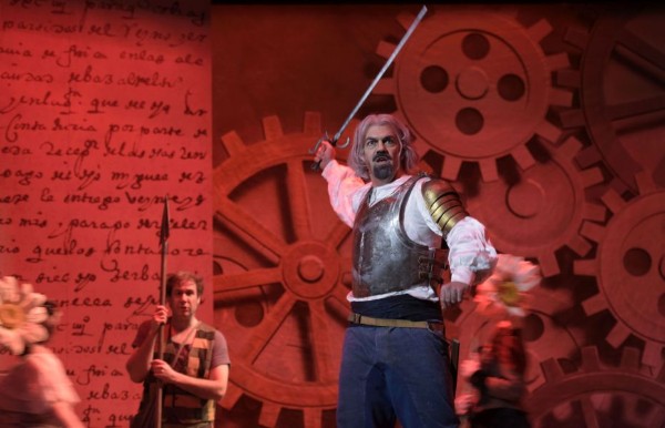 Die von Don Quijote umworbene Dulcinea, die für sein Werben nur Spott übrig hat, wird von der Tschechin Barbora Fritscher überzeugend dargestellt. Sie verfügt über eine enorme Bühnenpräsenz, ihr farbenreicher, warmer Mezzo drückt Verträumtheit und Verzweiflung ebenso aus wie überbordende Lebensfreude. Sergio Raonic Lukovic, der die Titelrolle übernommen hat, wartet da mit weniger Facettenreichtum auf, verfügt aber über einen weichen Bassbariton. Da kommt ihm die Partitur zugute, die getragenen und melancholische Melodienbögen, mit der Massenet seinen Helden über weiter Strecken versorgt, gelingen ihm wunderbar. Sein getreuer Gefolgsmann Sancho Panza findet in Guido Kunze einen idealen Darsteller. In der Rolle kann er mit seinem weichen lyrischen Bariton sein komödiantisches Talent voll ausleben. In den beiden letzten Akten gelingen ihm anrührende Szenen, da auf Deutsch gesungen wird, ist zudem seine außergewöhnliche Textverständlichkeit hervorzuheben. Über die verfügt auch Ensembleneuzugang Derek Rue. Der schlanke Tenor des jungen Amerikaners passt gut zum Banditen und bildet einen schönen Gegenpol zur reiferen Stimme von Jens Winkelmann, der den Räuberhauptmann darstellt.