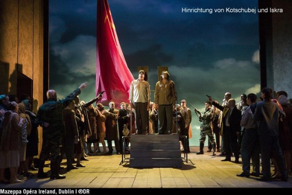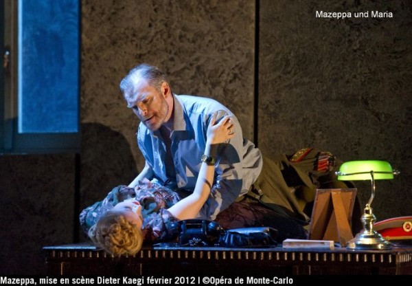Der Schweizer Regisseur Dieter Kaegi siedelt das Geschehen in den zwanziger Jahren des revolutionären Russlands an. Obwohl schon die wenigen historische Parallelen ziemlich hergezogen sind, gelingt ihm eine wirkungsvolle stringente Umsetzung des Stoffs: Die schwärmerische Liebe der Maria zu Mazeppa (vergleichbar gemacht mit der von Senta zum Holländer); die plötzliche Konfrontation der früheren Freunde Mazeppa und Kotschubej und ihrer Mannen, die zunehmende Wandlung des Mazeppa zu Machtgier, Starrsinn und Grausamkeit, die ihn im Verlauf der Geschichte immer unsympathischer werden lässt; Weichheit, schlappe Intrige und Untergang des reichen Kotschubej, der Wahnsinnsverfall der Maria. Kaegi gelingen eindringliche Bilder, wozu auch seine teilweise aufregende Personenregie beiträgt. Ein überzeugendes Bühnenbild für die sechs Szenen der Oper hat Rudy Sabounghi gebaut.