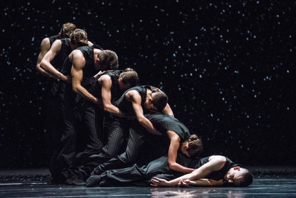 Es folgte „Solo Echo“, eine kürzere Choreographie (20 Min.) für 3 Tänzerinnen und 4 Tänzer von der Kanadierin Crystal Pite, das 2012 in den Niederlanden uraufgeführt wurde. Zu romantischen Teilen aus zwei Cello-Sonaten von Johannes Brahms tanzten die Protagonisten mit starkem Ausdruck vor kühler Kulisse, bei durchgehend leichtem Schneefall. Der Konflikt zwischen rauer, rücksichtloser Jugend und späterer Nachdenklichkeit entwickelte sich durch Kämpfe und abrupt ausbrechende Soli allmählich zu einer gewissen Übereinstimmung. Der Bewegungskanon passte ausgezeichnet zur Musik und überzeugte das Publikum vollauf.