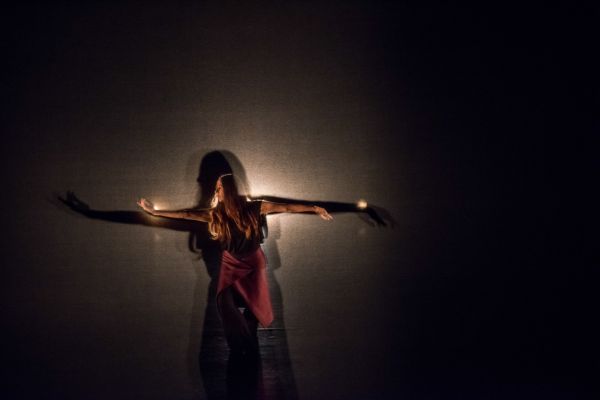 Hinter dem Titel „Both, and“ verbirgt sich ein starkes Solo der Tänzerin Dana Fouras, der Ehefrau Maliphants. Sie tanzte vor Scheinwerfern, die in Richtung Publikum leuchteten (manchmal zu grell, so dass man sie selbst gar nicht erkannte) und dabei ihren Schatten auf eine vorn gespannte, etwas durchsichtige Leinwand warfen. Je nachdem aus welcher Richtung ein oder mehrere Scheinwerfer leuchteten, tanzten und verbanden sich Schatten und Original zu ästhetischen Bildern bis sie ineinander zu verschmelzen schienen. Der Bewegungskanon war stark mit indischem Tanz angereichert, der oft auf die Armbewegungen besonderen Wert legt. Auch hier standen weiche Formen im Vordergrund; dazwischen gab es im Mittelteil kraftvolle kürzere Momente, als aus plötzlich absolutem Dunkel immer wieder vereinzelt Lichtkegel aufzogen, in denen Dana Fouras sich sehr elegant zur Musik von Mukul bewegte, was aber ein wenig eintönig wurde. Daher war der Applaus hier ein wenig zögerlich und nicht so anhaltend stürmisch wie bei den anderen Stücken.