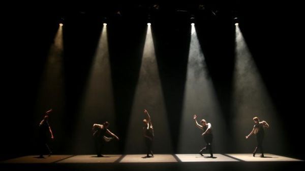 Auch zu dem abschließenden dreigeteilten „Piece No.43“ (so viele Stücke haben Maliphant /Hulls bisher zusammen erarbeitet) stammt von Mukul, der im Mittelteil Beethovens „Mondscheinsonate“ mit verarbeitet hat. Maliphant/Hulls ließen fünf Statuen allmählich ins Licht treten und lebendig werden. Das war sehr gut konstruiert und durch die verschiedenen Lichtreflexe verdeutlicht; verstärkt wurde es noch durch die für mich rhythmischen Geräusche eines aus der Ferne nahenden sehr langen Güterzuges. Zu Beethoven absolvierten die beiden Herren eine phantastisch artistische Boden-Kür, während drei Damen (zu den vorigen trat noch Yu-Hsien Wu hinzu) im Hintergrund mehr im Reigen schwingend der Musik Ausdruck gaben. Zum Schluss kehrte man zu pochendem Rhythmus und zu den Statuen zurück, die schließlich nach und nach im Dunkel verschwanden. An einigen Stellen hätte man sich jedoch insgesamt mehr Helligkeit gewünscht, um die Bewegungen noch genauer verfolgen zu können. Das gilt im Übrigen ebenfalls für „Broken Fall“.