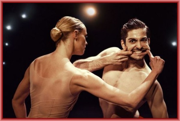 Das NDT brachte auch zwei neue Kreationen mit, die 2016 entstanden sind und bei den „Movimentos“ ihre Deutschlandpremiere erlebt haben. So hat der häufiger mit dem Ensemble arbeitende Gastchoreograf Marco Goecke mit „Woke up Blind“ („Blind erwacht“) zwei Songs des legendären Jeff Buckley verwendet, die von der Liebe handeln: Sein Bewegungskanon imitiert die Tierwelt sowohl mit kurzen schnellen Aktionen als auch mit ruhigen beobachtenden Momenten, wobei ich das „nervöse Herumflattern“ zu dem ruhigeren Lied „You and I“ als nicht so passend empfand, während es zu dem flotten „The Way Young Lovers Do“ ideal war.