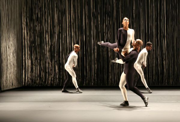Im ersten Teil gab es „Triz“, ein im August 2013 in Belo Horizonte uraufgeführtes Stück, das nun erstmals in Europa zu sehen ist. Der portugiesische Begriff „Por um Triz“ bedeutet „um Haaresbreite“, d.h. der Moment, wo Situationen in Gut oder Böse abgleiten können, sozusagen eine menschliche Gratwanderung, die hier schon durch die Kostümwahl charakterisiert war, durch vertikal in schwarz und weiß geteilte, hautenge Ganzkörper-Anzüge (Kostüme: Freusa Zechmeister). In einem von ebenfalls vertikal gespannten Stahlfäden begrenzten Raum (Bühne und Lichtdesign: Paolo Pederneiras) bewegten sich die Akteure geschmeidig als Paare, zu Dritt oder in unterschiedlich großen Gruppen. Weiche Wellenlinien liefen durch die Körper, sie umspielten sich und bildeten immer wieder neue schwarz-weiße Muster, die aber auf Dauer nicht direkt ansprachen, sondern eigenartig kühl-distanziert wirkten, nachdem der hierfür vorgesehene, attraktive Bewegungskanon ausgelotet war.