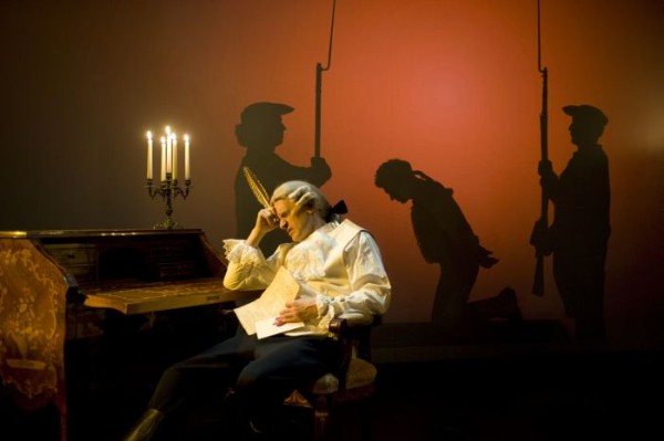Friedrichs Leben wird in Rückblenden erzählt: Der greise König unterhält sich mit dem Schatten seines Jugendfreundes Katte, dessen tragischer Tod zum schicksalhaften Wendepunkt seines Lebens wurde. Dann erleben wir die Geschichte von Friedrichs konfliktreicher Jugend, das rebellische Aufbe- gehren eines sensiblen und künstlerisch veranlagten Menschen gegen einen übermächtigen, roh-pragmatischen Vater, der dem Jungen seine preußischen Ideale einzubleuen versucht. Ein großes Verdienst der Autoren war, dass sie die gegensätzlichen Charaktere und Lebensentwürfe Friedrichs und seines Vaters einander wertfrei gegenüber stellten, so wurde der unausweichliche Konflikt der Beiden nachvollziehbar und menschlich berührend. Heiko Stang verkörperte einen imposanten Friedrich Wilhelm I., der einem trotz seiner Härte niemals unsympathisch wurde, weshalb auch er am Ende riesigen Beifall erntete.