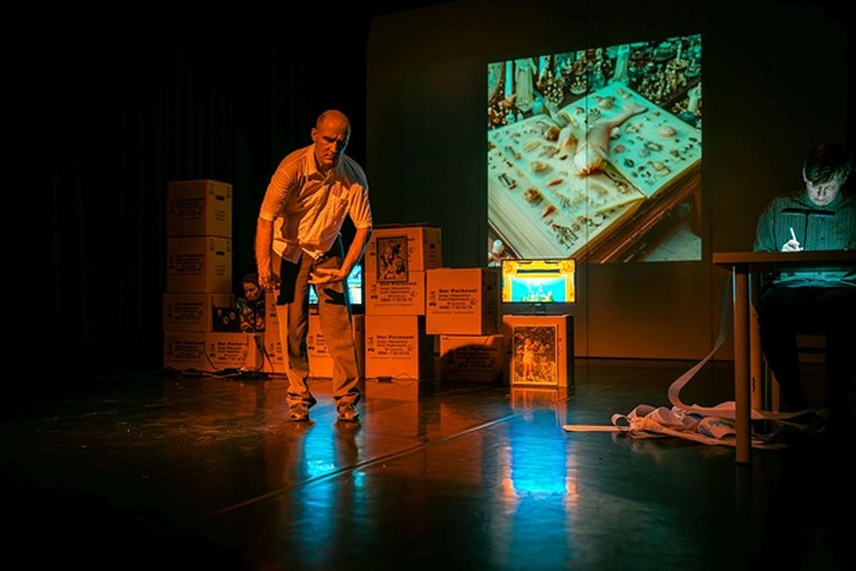 Die in den Video-Animationen, dem Bühnen-Setting mit seiner vorübergehend aus Umzugs-Kartons errichteten Wand (nach deren Abbau wird dann weiter geschichtet und gestapelt), im Tanz und mit der endlosen Abfolge und Zahl von Malereien postulierte Welt von Virtuositäten, die, weil sie notwendiger Weise unvollkommen sind, auch unvollkommen kommunizieren, ist die sich störende und also gestörte, unvollkommene Welt. Sie ist wie eine Maschine, die unablässig neuen Ausdruck in Form von temporärer Materialität produziert.