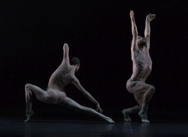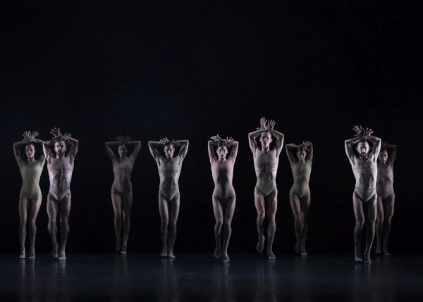 Diesem insgesamt problematischen Einstieg folgte das Tanzstück Half Life der in Jerusalem geborenen Choreografen Sharon Eyal und Gai Behar, das 2017 vom Koeniglich Schwedischen Ballett Stockholm uraufgeführt wurde. In knappsten Trikots und mit Körpertattoos (Rebecca Hytting) zeigen zunächst ein Tänzer und eine Tänzerin in stupider Monotonie sich ewig wiederholende profane Bewegungen, bis sich endlich von rechts eine elfköpfige Tänzergruppe herein schiebt. Deren Bewegungsduktus erinnert in seinen Gliederverrenkungen und Körperverschiebungen an Behinderte. Wie unter Stromschlägen zucken und schlottern die Leiber, werden die Augen schreckhaft aufgerissen – alles noch apokalyptisch verstärkt durch die peitschenden Schläge einer immer mehr anschwellenden Lärmfolie von Ori Lichtik.