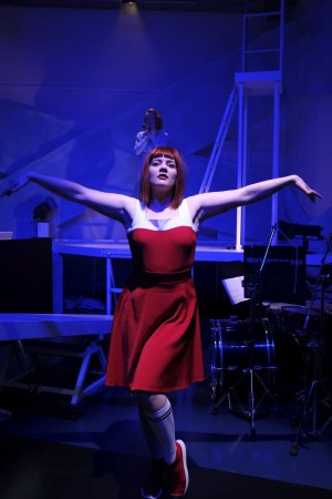 Der Politgaukler benutzt die Gewalt zur Sättigung eigener Lüste, was unbedeutend wäre, würden sich damit nicht die Schicksale ganzer Völker verbinden. Des Diktators „Ethos“ – nennen wir es so – schwankt zwischen Nihilismus, Größenwahn und einem falsch verstandenen Heroismus: „Gewalt reizt Gewalt, und die stärkere siegt. Das Gesetz meines Lebens und meiner Einsamkeit. Gefahr zu suchen und zu bändigen. Großes zu bewegen und den Menschen meinen Willen aufzuzwingen.“ Musikalisch entlädt sich diese Sprache in auffahrenden Gesten, in den Duetten mag ein pardierter Puccini nicht fern sein, eine angedeutete Atonalität verschrägt das Ganze, nicht allein am Ende triumphiert die Dissonanz. Wie gesagt: Wenn der Zuhörer alles verstünde… denn hier steht es schlecht. Da insbesondere beim Diktator, also Lawrence Halksworth, die Verständlichkeit gegen Null tendiert, auch die anderen Protagonisten, wenn sie im kleinen Raum dynamisch überdrehen, das Verständliche in irgendeinen Hallraum gerät, nimmt das tiefere Interesse an den wahren Konflikten beim Zuschauer, der es genau wissen will, vermutlich schon bald ab. Kommen hinzu die Texte, mit denen die Produktion die nur 26 Minuten lange Originaloper mit und ohne Musik angereichert hat. Etliches bleibt ein Rätsel: Soll das Lyrik sein? Ist es Dokumentartheater? Was will man uns sagen? Man ahnt es mehr als dass man es aus dem Mund der Protagonisten erführe, die sich doch mit vollem körperlichen und vokalen Einsatz in die gewiss verdienstvolle, politisch relevante Angelegenheit werfen. Wenn Eva Maria Nikolaus, die Charlotte des Abends, einmal mit dem falschen Fuß auf dem Boden aufkommt, weil sie die Schräge der herabgelassenen Wippe unterschätzt hat, die Sängerin aber unverdrossen weitersingt, als sei nichts geschehen, erschrickt man einen Moment. Wie gesagt: Voller Einsatz, auch bei der Maria der Isabel Reinhard, die sich einmal in einen seltsamen Pas de deux mit ihrem kranken Offizier begibt. Auch Sotiris Charalampous singt ansprechend, aber am besten in Ausdruck und Stimmgeschmeidgkeit fand ich doch die Diktatorenfrau. Soviel Verführung (des Rezensenten) muss schließlich sein.