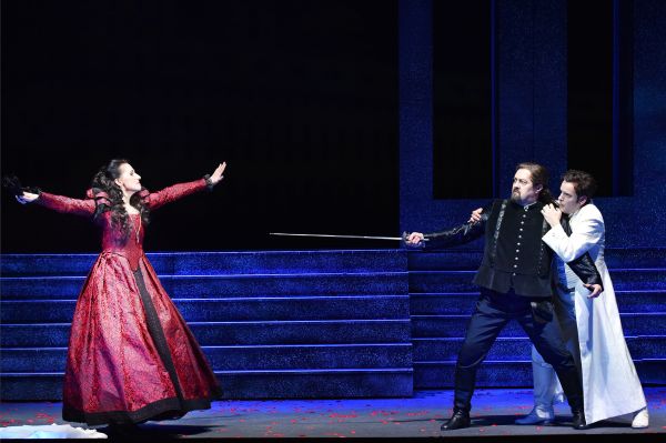 Denn mit dem Ensemblemitglied Andreas Jäpel hat das Haus einen Rodrigo, der mit seinem klangvollen und ausdrucksstarken Bariton sowie entsprechender Mimik den Marquis von Posa an jedem großen Haus singen könnte, das aber auch unerfindlichen Gründen nicht tut. Er und Marlene Lichtenberg als Prinzessin Eboli waren stimmlich die besten der sechs Protagonisten. Wie Stella Motina, Andreas Jäpel, Jens Klaus Wilde und Jörn E. Werner debütierte Lichtenberg in dieser anspruchsvollen Partie und machte daraus eine beeindruckende Rollenstudie der Hofintrigantin. Mit einem sowohl in der Tiefe wie bei den Spitzentönen bestens ansprechenden Mezzo verlieh sie der Eboli große Intensität und viel Charakter. Mit ihr bewies Lichtenberg einmal mehr, dass sie neben dem deutschen Fach mit Schwerpunkt Richard Wagner auch ebenso gut im italienischen Fach zu Hause ist.
