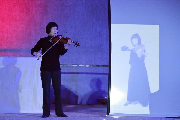 Es gibt viel zu lernen für die Sängerin, einen Auftritt ihres Sängerkollegen, dem Bass-Bariton Thomas Peter begleitet sie auf der Bühne als dessen Schatten, gleiche Bewegungen und lippensynchron. Ein schöner Regieeinfall ist es, die Geige und Bratsche spielende Yumico Noda sich selbst begleiten zu lassen, ein mal hinter einem durchscheinenden Wandschirm als Videoeinspielung, ein mal live auf der Bühne.