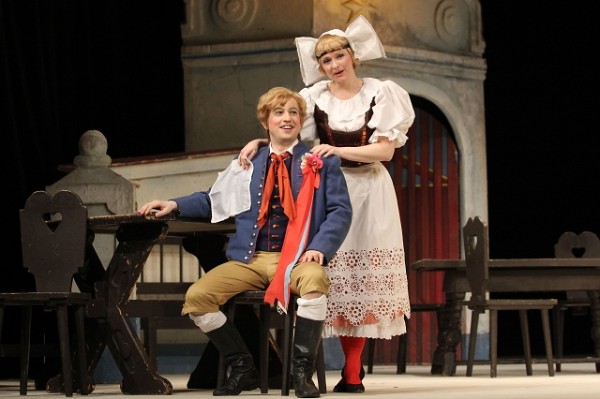 Und hier möchte ich gleich mit einer vollkommen rollendeckenden Darstellung beginnen. Pavel Vancura gibt den verschlagenen, bauernschlauen, alle Feinheiten kennenden und am Ende doch betrogenen Heiratsvermittler Kezal. Und er identifiziert sich vollkommen mit der Rolle. Sowohl vom darstellerischen als auch vom gesanglichen kann er vollstens überzeugen. Sein kräftiger profunder Bass, der leicht anspricht und in jeder Lage den Raum füllt überzeugt, exzellent auch im Duett mit Hans, eine mehr als rollendeckende ausgezeichnete Leistung. Rollendeckend und das heißt eine gute Leistung von Jaroslav Patocka als Grundbesitzer Micha und Blanka Cerna als Agnes seine Frau. Ihre beiden Söhne sind jeder auf seine Art nicht nur rollendeckend sondern ausgezeichnet besetzt. Da ist einmal Martin Srejma als Hans, Michas Sohn aus erster Ehe. Mit schönem vollem und weichem Tenor, der auch in den Spitzentönen keine Probleme zu fürchten braucht, kann er brillieren und das Publikum für sich einnehmen, ebenso wie Milos Guth als etwas zurückgebliebener aber dennoch liebenswerter Sohn Wenzel, der aus seiner Rolle ein Paradestückchen macht. Sein heller, leicht ansprechender Tenor ist jeder Situation gewachsen und seine darstellerischen Qualitäten sind ausgezeichnet. Seine Darstellung ist besonders herauszuheben, weil gerade in dieser Rolle die Gefahr nahe liegt zu überzeichnen und ins Lächerliche abzurutschen. Dies ist bei Srejma in keiner Sekunde zu verspüren, er macht die Rolle des Wenzels mit zu einer tragenden Hauptrolle und Wenzel selbst zu einer tragisch-komischen Figur, dem jedoch die Zuneigung des Publikums sicher ist.
