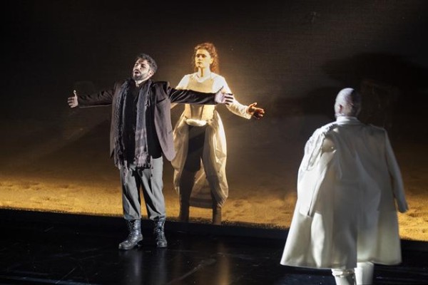 Auch musikalisch wird in Gent mit so manchem Pfund gewuchert. Angefangen beim tadellos singenden und mit feinem Tenor ausgestatteten Chorsolisten Stephan Adriaens über David Shipley, der den Sandoval mit massigem Bariton gekonnt zum gewaltgeilen Handlanger des Herzogs macht, bis hin zu Markus Suihkonen, der mit eindrucksvollem Bass den Revoluzzer Daniel gibt, ist auch die zweite Reihe kraftvoll besetzt. Ania Jeruc verfügt ebenfalls über viel Kraft und zeigt die in der Partie der Hélène auch unumwunden, lässt aber für meinen Geschmack da und dort ein wenig Gefühl vermissen und betont so die kämpferische Seite ihrer Figur über Gebühr. Dazu neigt sie in der Höhe zu einer gewissen Schärfe. Der türkische Bariton Kartal Karagedik war mir in der Vergangenheit schon mehrfach aufgefallen, das Hamburger Ensemblemitglied hatte mich schon als Gérard im „Chénier“, in Puccinis „Fanciulla“ oder in der Wolf-Ferrari-Rarität „I Gioielli della Madonna“ begeistert. Deshalb war ich auf seine Interpretation der Titelfigur besonders gespannt. Mühelos meistert er auch die Herausforderungen des Belcanto, wobei ihm die wohl schwierigste Rolle des Abends zukommt, fallen doch die Battistelli-Ergänzungen vornehmlich in seinen Part. Gerade noch muss er im Belcanto-Style fast vornehm den Despoten geben, um innerhalb von Sekunden die offen zur Schau getragene Brutalität in der Battistelli-Komposition zeigen, ehe er ein paar Takte später wieder Donizetti singt. Dabei zeigt er dermaßen viele Facetten seines zu großem Gefühl wie zu großem Ausbruch fähigen Baritons, dass es eine wahre Freude ist. Das Publikum freilich schnappt sich beim Schlussapplaus der Tenor. Wie kann man aber auch einer so schönen Stimme nicht erliegen, wie sie Enea Scala hat. Voller Gefühl und metallischem Klang, von endlosem Atem und enorm höhensicher, was der Italiener am gestrigen Abend gerne und oft zeigt. Ein uneingeschränktes „Bravissimo“ also den beiden Herren!