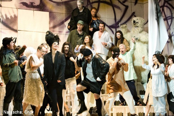 Die Vlaamse Opera, die pro Saison sieben Produktionen herausbringt und keine n Repertoirebetrieb hat, spielt die Opern jeweils in Antwerpen und Gent. Welcher Hafer hat wohl die Intendanz bei so begrenzten Möglich-keiten gestochen, im Rahmen ihrer (bislang?) dreiteiligen Tschaikowski- Reihe das fast nie aufgeführte Werk mit seiner opernuntauglichen Drama-turgie auszugraben statt die Pique Dame zu spielen? Darauf gibt es auch eine zynische Antwort: für Pique Dame werden Könner für eine tiefgründige, inspirierte Interpretation benötigt, bei Tscharodeika dagegen kann man weniger Schaden anrichten. Diesen Schaden nahm das Inszenie-rungsteam Tatjana Gürbaca (Regie) und Luc Joosten (Dramaturgie) in Kauf, denn statt die Chance zu ergreifen, an den auch in der Tscharodeika vorhandenen dramaturgischen und musikalischen Vertiefungsmöglichkeiten entlang zu inszenieren, was nur über die Personenzeichnung funktionieren kann, wurde nur an der Oberfläche herumgemurkst und Klamauk erzeugt, wozu auch noch die musikalische Leitung (Dmitri Jurowski) eine Hand lieh.
