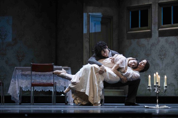 Zerbrechlich sind auch Lauras Glastiere, deren Kristallglitzern sie in eine Phantasiewelt hinüberschweben läßt. Schweben kann sie selbst, die herausragend von Alina Cojocaru dargestellt wird, mit ihrer Gehbehinderung nicht; das Hinken hindert das zarte Mädchen daran, selbstbewußt aus der Enge der kaputten Familie hinaus in die Welt zu treten. In dieser wiederum versucht ihr Bruder Tom, sein Leben mit all seinen Enttäuschungen zu bestehen, scheitert aber an der harten Realität und fehlender eigener Standhaftigkeit, denn er betäubt seine Verzweiflung über sein Scheitern als Dichter mit Alkohol. Tom ist Félix Paquet, sein alter ego Tennessee, der über sein Leben reflektiert, Edvin Revazov. Beide bilden in völliger tänzerischer Übereinstimmung die komplexe Konstruktion eines Charakters ab, der im Bühnenstück sowohl die Erzählebene übernimmt als auch Akteur ist.
