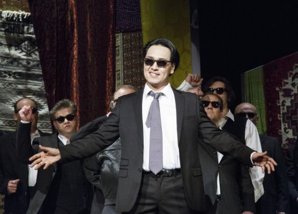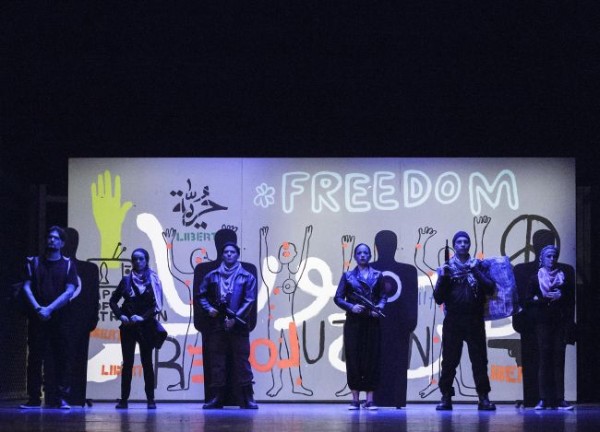 Es war nicht von ungefähr, dass die Theaterleitung gerade für den am 20. Juni stattfindenden ersten Gedenktag an Flüchtlinge und Vertriebene eine Aufführung dieser Produktion angesetzt hat. Denn genau bei dieser Thematik setzt Lunn mit seiner Konzeption an. Er verlegt das Stück von Sevilla in den Mittelmeerraum und lässt das Ganze in einem von Huntley Muir – von ihm stammen auch die gelungenen Kostüme – geschaffenen umzäumten und von gelangweilten Soldaten bewachten Flüchtlingslager spielen, das auch Assoziationen an einen Käfig oder ein Ghetto hervorruft. Eindringlich beschwört der Regisseur das ganze Elend der Flüchtlinge und Vertriebenen herauf, zeigt ihre Abhängigkeit von Schlepperbanden und ihre Ohnmacht gegenüber den Angriffen ausländerfeindlicher, schwarz gekleideter Terroristen mit Strumpfmasken, die ganz und gar Ausfluss der mafiösen Strukturen sind, die heutzutage im Mittelmeerraum vorherrschen. Der in einem schicken schwarzen Anzug auftretende Escamillo ist hier kein traditioneller Torero, sondern der Chef dieser anrüchigen Gesellschaft. Gleichzeitig hat er aber auch etwas von einem Show-Star an sich, der ganz genau weiß, wie man das Volk glücklich machen und von den gravierenden politischen Problemen des Alltags ablenken kann.