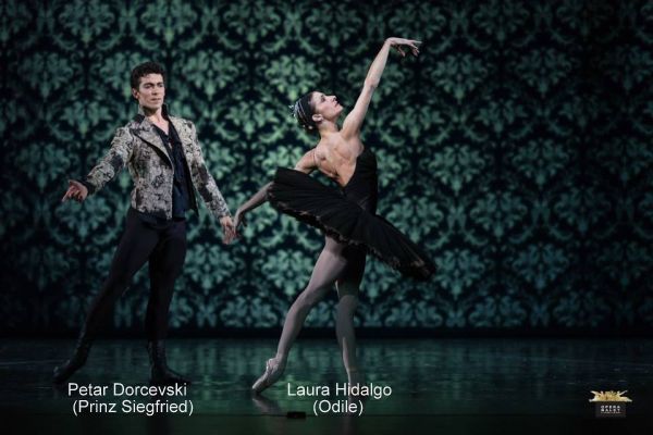 Die Russin Olga Andreeva – früher selbst Odette/Odile – war eine ausdruckstarke Königin, die auch die Szene beherrschte, wenn sie nicht tanzte und bloß mit sparsamen Gesten, königlicher Haltung und anteilnehmender Mimik die Szene beobachtete. Die Prinzessin, die durch die Königin dem Prinzen zugedacht ist, interpretierte die Italienerin Rita Pollacchi kraftvoll-intensiv. Sie brillierte auch im Pas de Six und bei den kleinen Schwänen, wie ja überhaupt fast alle Mitwirkenden in mehreren Rollen des überaus personenreichen Stückes auf der Bühne standen. In späteren Aufführungen werden die beiden weiblichen Hauptgestalten Odile und Odette getrennt besetzt werden und dann wird Rita Pollacchi die Odile tanzen. Am Premierenabend war allerdings Odette und Odile mit einer Künstlerin besetzt. Als Gast gestaltete die Argentinierin Laura Hidalgo diese zentrale Figur, die wohl eine der anspruchsvollsten und anstrengendsten Rollen des klassischen Balletts ist. Es sind ja nicht nur zwei völlig unterschiedliche Charaktere darzustellen – der lyrisch-gute Weiße Schwan und der dämonische Schwarze Schwan – auch technisch werden höchste Ansprüche an die Tänzerin gestellt. Berühmt-berüchtigt sind wohl die zweiunddreißig Fouettés im dritten Akt. Wer an Vergleichen interessiert ist, findet auf Youtube eine Fülle von Aufnahmen mit diesem Bravourstück – hier ein Beispiel des legendären Mariinski-Ballets (ab Min. 5:09). Laura Hidalgo hat die Herausforderungen bravourös bestanden – man kann nur bewundernd das erleben, was unlängst in einem ausführlichen Interview mit einer der führenden Tänzerinnen unserer Zeit in der Frankfurter Allgemeinen so beschrieben wurde: „Das Ballerina-Dasein ist ein gelebter Widerspruch. Sie sehen so zerbrechlich aus, dabei sind Balletttänzer so zäh wie kaum ein Hochleistungssportler. Es geht dabei nicht um die eine Hundertstelsekunde schneller, höher oder weiter, sondern um einen Ausdruck, um eine Leichtigkeit, um Perfektion, die ebenso schwer zu erklären wie zu bekommen ist.“ Laura Hidalgo ist an diesem Premierenabend das gelungen, was alle großen Ballerinen anstreben – die Verbindung von höchster Körperbeherrschung und ein völliges Aufgehen in der dargestellten Rolle, sozusagen unter dem Motto „Wenn du nicht mehr du selbst bist, ist es perfekt“.
