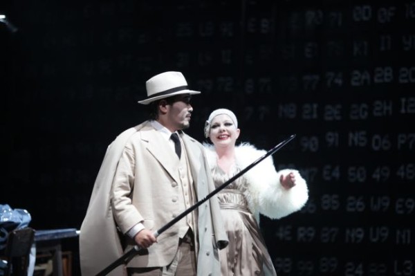 Es ist kein abgehobener Mythos, den Heyme hier geradlinig erzählt, sondern zeitgemäßes Alltagsleben in allen seinen Ausprägungen. Althergebrachte hehre Inhalte deutet er in manchmal recht banal anmutende Situationen um, wobei er dem Zuschauer geschickt den Spiegel vorhält. Das Institut der Ehe wird am Beispiel von Wotan und Fricka genauso auf die Schippe genommen wie die Dominanz des Sexus über den Menschen. Letzterem entspricht es, dass Erda als hübsche, junge Prostituierte in schwarzem Hemd auftritt, die ihre Warnung durch einen Bilderrahmen singt. Das Urweibliche erscheint so als Projektion der niedrigen Instinkte einer sexhörigen Männerwelt. Die Rheintöchter sind nicht mehr länger einfache Naturwesen, sondern nur noch reichlich egoistische und stark ihrer Eitelkeit frönende lüsterne Verführerinnen, deren abweisendes Verhalten den Goldraub des zuerst gar nicht böse, sondern cool und lässig mit den Händen in den Hosentaschen auftretenden und zudem gut aussehenden Alberich, der sich an Pornoheften aufgeilt, als durchaus verständliche Trotztat erscheinen lassen. Wagners Antisemitismus wird von Heyme ebenfalls dergestalt kritisch unter die Lupe genommen, als er die Riesen als schwarz gewandete, jüdische anmutende Zimmerleute mit Hüten und Schulterbalken vorführt, die Kinder als billige Arbeitssklaven missbrauchen. Auch die geknechteten Nibelungen, die per Schwarz-Weiß-Film auf den Hintergrund projiziert werden, gehören der jungen Generation an. Das alles war bereits im 19. Jahrhundert hoch aktuell. Einfühlsam zeichnet Heyme hier das Bild einer degenerierten Klassengesellschaft, die an ihren eigenen Errungenschaften zugrunde geht. Sie wird Opfer der von ihr selbst in die Wege geleiteten Industrialisierung. Ihr Untergang ist systemimmanent und unausweichlich. Die Schöpfung beinhaltet bereits den Weltuntergang. Dem vermag der strippenziehende Theaterdirektor Wotan nichts entgegenzusetzen, auch deswegen, weil er in dem mephistophelischen, immateriell wirkenden Entertainer und ausgemachtem Machiavellisten Loge nicht wirklich einen Helfer auf seiner Seite hat. Dessen nur scheinbar gut gemeinte Ratschläge erweisen sich letztlich als kontraproduktiv und beschleunigen den Weg zum Abgrund nur. Die gutbürgerlichen Götter landen symbolisch auf ihrem eigenen Foltertisch, der an diesem Abend einmal aufgrund einer technischen Panne ungewollt mit dem vom Schnürboden herabfahrenden, aus mehreren Kammern bestehenden Metallkonstruktion Walhall kollidierte. Das aber nur am Rande. Insgesamt haben wir es hier mit einer gelungenen, den Sinn des Stückes trotz Modernisierung nicht verfälschenden Inszenierung zu tun, die Hansgünther Heyme alle Ehre macht.