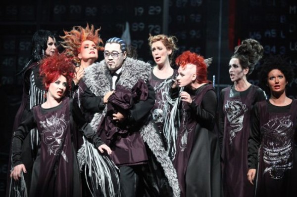 An dieser traurigen Tatsache vermögen auch die Helden nichts zu ändern, die von den durch ihre unterschiedlichen Perücken gekonnt individualisierten Walküren im dritten Aufzug eingesammelt werden. Wenn die Wotans-Töchter auf einem Laufsteg die in kleinen Kästen aufbewahrten Überbleibsel der gefallenen Heroen zur Schau stellen und diese anschließend in den Fächern der „Wand des Todes“ verstauen, ist das eine ziemlich makabre, aber vielleicht doch berechtigte Kritik an einer übermäßigen Heldenverehrung. Der Walkürenritt erhält dadurch einen ausgesprochen zynischen Charakter. In der Schlussszene des Musikdramas lässt Heyme dann noch geschickt Tschechow’sche Elemente in seine Interpretation mit einfließen, wenn er die acht Walküren bis zum Ende auf der Bühne belässt und sie dem Zwiegespräch zwischen Wotan und Brünnhilde, die im Unterkleid eingeschläfert wird, lauschen lässt. Das war alles sehr überzeugend und von Heyme mit einem Höchstmaß an technischer Versiertheit umgesetzt.