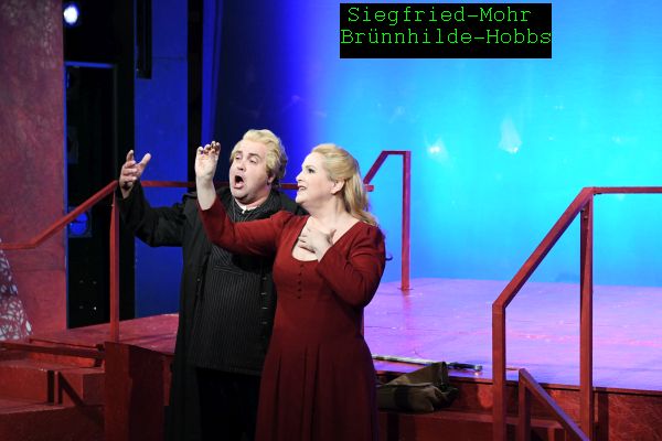 Als erst übermütig und jugendlich, dann ergreifend und gedemütigt im Spiel und in Bezug auf den kleinen Theaterraum sehr hochdramatisch aber sehr präzise und mit leuchtender Stimme singend gestaltete Dara Hobbs die zentrale Partie der Brünnhilde. Das beeindruckte besonders bei der Erweckung im Siegfried, in den Verzweiflungsausbrüchen im zweiten Aufzug und dem feierlichen Schlußgesang im dritten Aufzug der Götterdämmerung bis zum stimmlich zurückgenommenen lang angehaltenen „Ruhe du Gott“ um dann noch einmal Grane vom hohen b zum tiefen es herunterwiehern zu lassen. Magdalena Anna Hofmann war stimmlich ergreifend als Sieglinde besonders im intensiven hehrsten Wunder. Zusätzlich übernahm sie die undankbare Rolle der Gutrune. Urmutter Erda war Janina Baechle.
