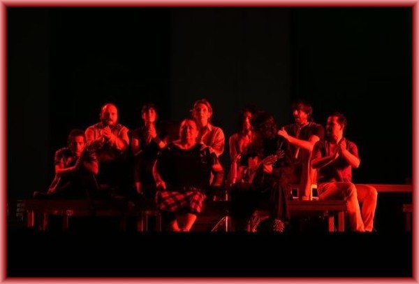 Das 90-minütige Werk „La Fiesta“ stellt zwar Freude an Musik und Tanz in den Mittelpunkt, aber auch allgemeine Tristesse des Lebens gehört dazu. Galván schart dazu acht sehr unterschiedliche Typen um sich, um gemeinsam eine Fiesta zu präsentieren, die die Stunde nach der eigentlichen Vorstellung zum Thema hat, in der sich Stress und Frust der Performance auf unterschiedliche Weise lösen. Da entwickeln sich kleinere Episoden aus hartem Rhythmus, der geklatscht, gestampft oder geklopft wird. Die Ausstattung von Peggy Housset gab den Protagonisten genügend Raum: Einige Podeste in verschiedenen Höhen, deren unterschiedliche Oberflächen und spezielle Bearbeitung die Geräuschvielfalt weiter differenzierten, zu der Galván als Choreograph und „Bailaor“ seine Mitstreiter animierte; da gab es von durchdringenden Schreien über Schöngesang bis zu sich steigerndem, erschütterndem Weinen alles, was Stimmband und Kehlkopf hergeben. Das allein schon war in seiner Absurdität eine große Leistung aller Akteure.