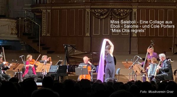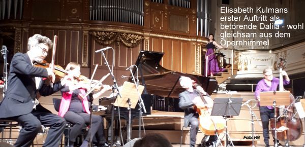 Schon der Beginn ist großartig in Szene gesetzt. Die Instrumentalisten betreten das Podium und beginnen mit einem improvisiert wirkenden Prélude, das nahtlos in das Vorspiel der Dalila-Arie mündet. Hoch über dem Konzertpodium öffnet sich die Türe (dort treten normalerweise im Stefaniensaal der Chor oder die Schlagzeuger und Blechbläser eines großen Orchesters auf) und Elisabeth Kulman erscheint – ganz in der strahlenden Pose der Operndiva. Sie schreitet während der Arie langsamen Schritts herunter – geradezu als käme sie direkt aus dem „Opernhimmel“ zu ihrem Publikum – und singt wahrhaft unvergleichlich die Dalila-Arie Mon coeur s’ouvre à ta voix . Der Kurier schrieb darüber bei der Premiere: so gut wie zurzeit garantiert keine andere! Das stimmt auch fünf Jahre später genau so – ja, für mich ist der noble warme Mezzoklang noch runder und dunkler geworden. Das Publikum spendet begeisterten Beifall – und Elisabeth Kulman sagt trocken das ist alles gelogen und geht bruchlos in Cole Porters I hate men über. Das alles hatte man schon erlebt – ebenso wie die nächsten Stücke. Aber es lag von Beginn an eine melancholische Abschiedsstimmung über den Programm. Der zentrale Punkt des ersten Teils waren zweifellos die a-capella und pianissimo mit fast gebrochener Stimme vorgetragene Paminen-Arie (Kulmans erster Opern-Soloauftritt vor ziemlich genau 20 Jahren an der Wiener Volksoper!) und nahtlos übergehend der zweite Teil von Schuberts Der Tod und das Mädchen, in dem Kulman zuletzt mit dem Rücken zum Publikum die Einladung des Todes zu sanftem Schaf in seinen Armen ungemein intensiv gestaltete. Unmittelbar anschließend folgte die große Szene der Marschallin au dem Rosenkavalier. Auch das war zutiefst berührend – wohl ebenso für Kulman, ihre Instrumentalisten, aber auch für das merkbar den Atem anhaltende Publikum!