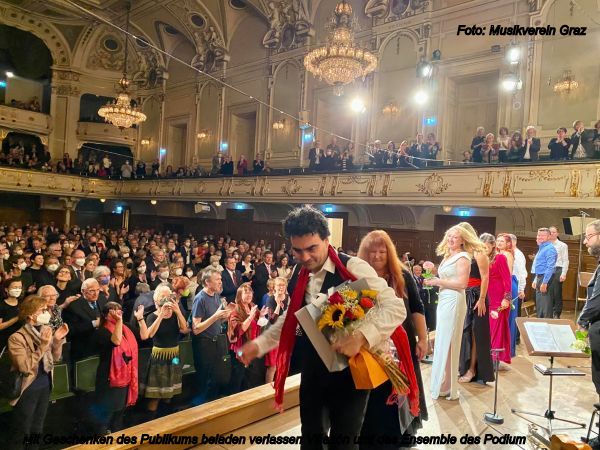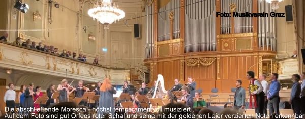 Eigentlich war diese Produktion bereits für 2020 geplant. Im Rahmen einer Tournee waren Aufführungen in Paris, Düsseldorf, München, Leipzig, Wien und Graz vorgesehen. Aber all das fiel wegen Corona ins Wasser. Dem Generalsekretär des Grazer Musikvereins Dr. Michael Nemeth gelang es als einzigem Veranstalter, einen Ersatztermin zu finden und so wurde das Grazer Publikum im ausverkauften Stephaniensaal Zeuge eines großartigen und heftig bejubelten Konzert-,nein musikdramatischen Abends! Die Besetzung war klug gewählt: der Publikumsmagnet Rolando Villazón in der zentralen Rolle des Orfeo und das in der alten Musik erprobte Vokal- und Instrumentalensemble L’Arpeggiata.