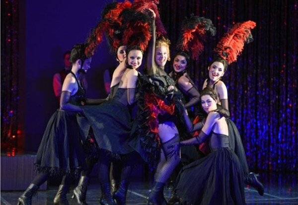 Was aber nichts daran änderte, dass sich das Auditorium köstlich amüsierte. Und man muss zugeben, dass Zanella seine Inszenierung insgesamt recht kurzweilig anlegte, heiter und mit großem Spaßpotential, wobei letzteres auch durch viel Wortwitz vermittelt wurde. So war es beispielsweise recht vergnüglich, wenn sich Rosillon in der Pavillonszene vergeblich bemühte, Valencienne ihren Keuschheitsgürtel abzunehmen. Das mehrmalige In-Ohnmacht-Fallen des Barons Zeta wirkte indes etwas übertrieben. Einmal hätte vollauf genügt. Etwas Klamauk durfte schon mal sein, aber auch Tschechow’sche Elemente. So z. B. ganz zu Beginn, wenn Hanna im schwarzen Witwen-Look vom rechten Seitenportal aus das Treiben beobachtet und dann unauffällig am Rand der Bühne entlang zum Hintergrund geht. Im dritten Akt darf sie sich auch mal kurz unter die Grisetten mischen, die von Valencienne angeführt werden. Diese und Rosillon hätten aber einer etwas schärferen Zeichnung seitens der Regie bedurft. Auch andere kleine Rollen hat der Regisseur leider etwas stiefmütterlich behandelt, sodass diese blass blieben. In dieser Beziehung waren die Gewichte nicht gut verteilt.