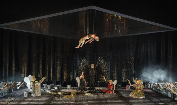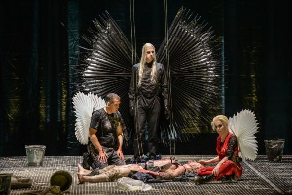 Wie schon in der Ouverture gibt das Orchester unter Alexander Soddy einen sehr prägnanten Part und läßt den Sängern immer die Chance, ihre ja schwierigen Partien gut durchzubringen. Ein wirklich gelungenes Zusammenspiel Graben – Bühne bis auf den Schlußchor, wo bei rasendem Tempo einige Chorphrasen etwas verschleppt erscheinen. Die komponierte Mystik und die Hoffnungs-Aufhellung im 1.Chor ist aber gut herausgearbeitet.
