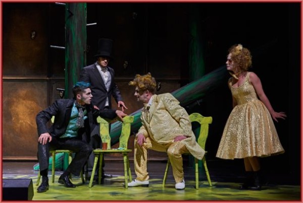 Wunderbare Kostüme von Juan León, der auch für die Bühne verantwortlich zeichnet. Er schafft es mit den wenigen Requisiten, eine quasi Weltreise des Protagonisten sinnvoll zu stilisieren. Nicht zu vergessen die Choreografie vom Multitalent Richard Lingscheidt; die Tanzeinlagen haben Let´s-Dance-Niveau 😉 !
