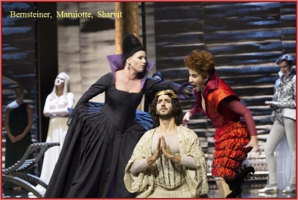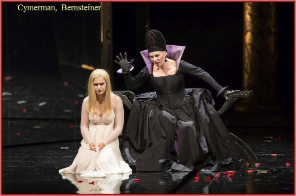 Das Bühnenbild von Tom Schenk ist sehr schlicht, dabei aber auch sehr ästhetisch – zwei verschiebbare Stellwände mit Spiegeln, eine große Säule und ein Thronhocker genügen vollauf. Auch die Kostüme (nach einem Entwurf von Robby Duiveman) sind in ihrer phantasievollen Ausgestaltung eine Augenweide.