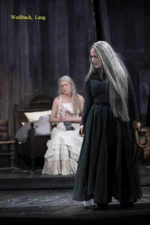 Regisseur Paul Esterhazy hat sein Konzept vom „Rheingold“ bis zur Götterdämmerung konsequent und klug durchgezogen. Das abgeschiedene Bergdorf ist auch hier wieder Schauplatz der Handlung. Aber der Großbauer Wotan hat inzwischen abgedankt und sitzt nur noch apathisch auf einer Bank oder beobachtet das Geschehen. Seine Funktion, die des Chefs im Dorf, hat nicht Gunther übernommen, sondern es ist Hagen, der hier eindeutig das Sagen hat. Nicht ohne Grund, denn Gunther ist hier ein debiler Trottel, der ständig seinen Stammtisch-Wimpel vor sich herträgt, während Hagen ein Meister der Manipulation ist.