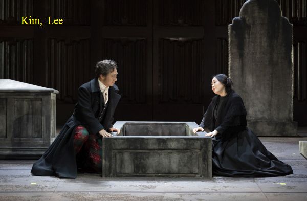 Musikalisch bereitet die Oldenburger Lucia reinsten Genuss. Sooyeon Lee ist der Partie der Lucia in jedem Moment gewachsen. Sie setzt die Töne mitunter etwas vorsichtig an, kann aber mit herrlichem Piano und technisch perfekten Koloraturen begeistern. Ihre Wahnsinnsszene, bei der sich ihre Stimme und die Flöte in einem subtilen Duett umspielen, wird man so schnell nicht vergessen. Als Edgardo setzt Jason Kim seinen robusten, aber auch zu empfindsamer Lyrik fähigen Tenor effektvoll ein. Seine Verzweiflung am Ende geht zu Herzen. Die Tristesse der Szene wird durch sanfte Schneeflocken verstärkt. Kihun Yoon hat man schon markanter gehört, dennoch beweist er als Enrico mit dunklem Bariton gestalterisches Format und kann gleich mit seiner Auftrittsarie seine zielgerichtete Autorität unterstreichen. Philipp Kapeller gibt den von Lucia ungewollten Verlobten Arturo mit ansprechendem Tenor als selbstgefälligen Schnösel.