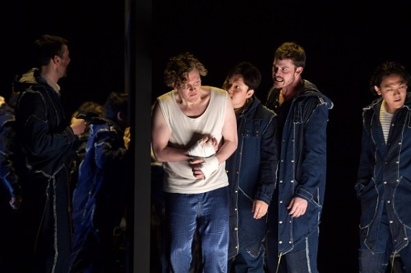 Ein wenig stellt er damit Gordon Bintner in den Schatten, der als eine der wenigen nicht vom Wahnsinn angefressenen Figuren Qualen, Verzweiflung und Aufbäumen des Journalisten Gorjancikov sehr eindrücklich mit seinem kernigen Bariton beglaubigt. Was der Zuschauer zu sehen bekommt, ist sein Alptraum. Gemeinsam mit ihm durchmißt das Publikum diesen Kreis der Hölle, von dem der Regisseur nicht zu viel versprochen hat, wenn er in ihm einen Widerschein von Dantes Inferno erblickt. Als weiterer Sympathieträger steht ihm Karen Vuong in der Hosenrolle des Aljeja zur Seite, die ihrem runden Sopran anrührende Töne des Mitgefühls abzugewinnen weiß. Die zahlreichen weiteren Klein- und Kleinstrollen sind trefflich aus dem Ensemble besetzt. Mit einem feinen, profilierten Auftritt macht der bewährte Peter Marsh als fröhlicher Sträfling auf sich aufmerksam.