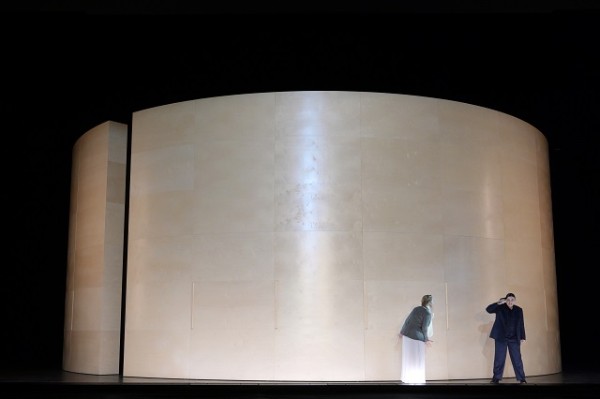 Es ist überhaupt das Beste, das man von Bühnenbild und Regie sagen kann, daß sie den Sängern die Gelegenheit bieten, ungestört ihre Vokalkunststückchen zu servieren, die das Wesen einer Rossini-Oper ausmachen. Karoly Risz hat ein Bühnenbild bauen lassen, welches aus zwei bühnendeckenhohen Halbrotunden aus hellem Holz besteht, die ineinander und gegeneinander verdreht werden können, mal einen Innenraum freigeben, oft aber eine gerundete Fassade zeigen, vor der die Protagonisten das machen können, was in der Regie eigentlich verpönt, akustisch aber höchst vorteilhaft ist, nämlich an der Rampe direkt ins Publikum zu singen.
