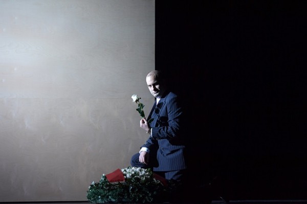 Das ist keine Kurzfassung, das ist bereits alles. Mehr passiert nicht. Es ist ein holzschnittartiges Libretto mit dünner Handlung und schwacher Dramaturgie. Auch das bewährte Regiehandwerk von Tilmann Köhler und engagierte Schauspielleistungen vermögen das nicht zu ändern. Dabei hatte der Beginn höhere Erwartungen geweckt: Falliero kehrt als Kriegsheld nach Venedig zurück und wird in einem Staatsakt gefeiert. Die Regie läßt ihn bei seinem Auftritt straucheln und stürzen, zeigt ihn somit als schwachen Helden. Der Staatsakt wird sodann mit feinem Humor karikiert. Doch dieser Fokus auf die politische Überwölbung wird nicht weiter verfolgt. Auch das Versprechen einer ironischen Brechung der Handlung wird nicht eingelöst. Es bleibt in homöopathischer Dosierung lediglich im dezenten gestischen Humor des Opernstudiomitglieds Carlos Andrés Cárdenas präsent, der in gleich drei Rollen als Staatsdiener schlüpfen darf und neben seinen mimischen Qualitäten auch mit einem attraktiven lyrischen Tenor auf sich aufmerksam macht.