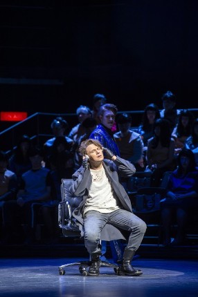 Der FAZ hat die Regisseurin verraten, sie habe bei ihrem Vorhaben der Aktualisierung des Stoffes die Titelfigur zunächst als Anhänger der Identitären Bewegung gesehen. Im Programmheft nennt sie als weitere Assoziationen die G-20-Krawalle von Linksextremisten, den Überfall auf den AfD-Politiker Magnitz, Hacker-Angriffe auf Politiker und – etwas kurios – einen „medialen Schlag gegen den Grünen-Politiker Robert Habeck“. Das alles ist für sie unterschiedslos „Gewalt“. So rührt sie eine indifferente Politiksoße an und bemerkt die inhärenten Unschärfen und Widersprüche bei ihrem Herumstochern im trüben Aktualisierungsungefähr nicht. Da spricht sie mit dem Brustton der Überzeugung von „offenkundig angewachsenen Ungerechtigkeiten“, hat aber noch einen Satz zuvor zu Recht gefragt: „Wer bestimmt überhaupt, was Gerechtigkeit ist?“ Ist wohl nicht so wichtig. Man wird ja mal fragen dürfen.