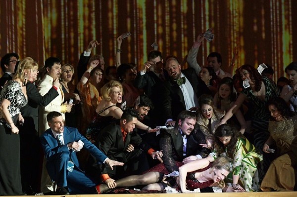 Der Regisseur arrangiert in dieser Kulisse die Handlung recht ansehnlich und lebendig, erfindet dabei aber das Rad nicht neu. Verdopplung von Hauptfiguren, die in unterschiedlichen Altersstadien gezeigt werden, Traumsequenzen in Videofilmen, Surrealismus, Textprojektionen – es gibt kaum ein Werkzeug zeitgenössischen Musiktheaters, das ausgelassen wird. Was die Produktion aber von Regietheater-Dutzendware unterscheidet, ist ihre souveräne Unangestrengtheit im Einsatz dieser Mittel. Es gibt keine erhobenen Zeigefinger und keine Ausrufezeichen. Sparsam eingesetzte Texteinblendungen zu Beginn jedes Aufzugs dienen der Gliederung. Sie führen mit sanfter Poesie und der überzeugenden Metapher der Jahreszeiten durch das Leben des tragisch scheiternden Paares, vom verheißungsvollen Aufbruch im Frühling bis zum allmählichen Verlöschen im Winter. Im Kontrast zu den beiden vorangegangenen Frankfurter Premieren besticht der Inszenierungsansatz durch seine Werkimmanenz. Da wird keine Idee aufgepfropft oder die Substanz zu vorgeblicher (horribile dictu) politischer Tagesaktualität umgebogen.