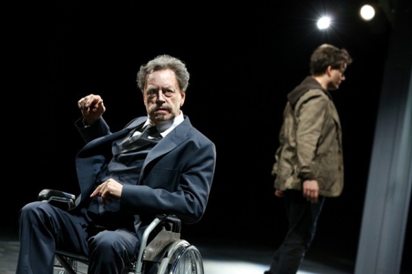 Im Programmheft gibt der Komponist Auskunft über seine Herangehensweise: „Man sollte versuchen, sich rasch von der textlichen Vorlage zu entfernen, damit die Musik ihr Eigenleben entfalten kann, also den Text in sich selbst zu Musik werden lassen, nicht die Musik am Text entlang entwickeln. Die Musik hat dann, wenn sie für ein Stück wachgeworden ist, ihr selbständiges Leben; der Text wird sozusagen in sie hineingestellt.“ Man kann sagen, daß Aribert Reimann diesem Anspruch in seiner Vertonung der „Gespenstersonate“ über weite Strecken gerecht geworden ist. Und das ist nicht unproblematisch. Die Aufmerksamkeit des Zuschauers ist so stark auf Text und Bühnengeschehen konzentriert, daß eine vollständig bewußte Wahrnehmung des höchst komplexen Klaggeschehens im Orchestergraben kaum möglich ist. Da die Musik nichts Illustratives hat, keine Assoziationen zu Gewohntem erlaubt, keine Anleihen bei tradierten Chiffren nimmt, liefern die Orchestermusiker alles andere als einen stützenden Soundtrack. Vielmehr wird eine abstrakte Klangfolie mit einem Eigenleben ausgebreitet, vor deren Hintergrund das Bühnengeschehen abläuft. Soweit sich dies ohne Blick in die Partitur sagen läßt, setzt das Kammerensemble mit seinen lediglich 18 Spielern unter der Leitung von Karsten Januschke dies alles mit Präzision und Plastizität um.