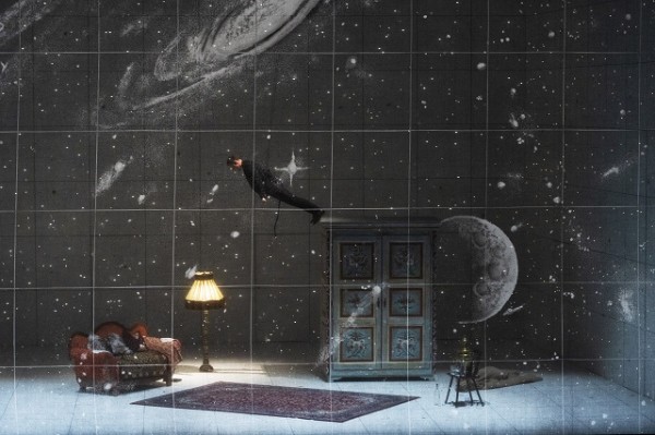 Läßt sich so etwas überhaupt inszenieren? Und wie! Christof Loy hat dabei auf Deutungen, Metaebenen oder Aktualisierungen verzichtet, läßt das Stück für sich sprechen und bringt es zum Leuchten. Er präsentiert pralle Tableaus und poetische Bilder. Dabei darf er mit seinen Ausstattern aus dem Vollen schöpfen. Johannes Leiacker hat ein Einheitsbühnenbild entworfen, welches sich als ideale Spielwiese für den funkensprühenden Einfallsreichtum der Regie erweist. Auf einem transparenten Zwischenvorhang wird ein nächtlicher Sternenhimmel mit kosmischer Weiterung gezeigt.